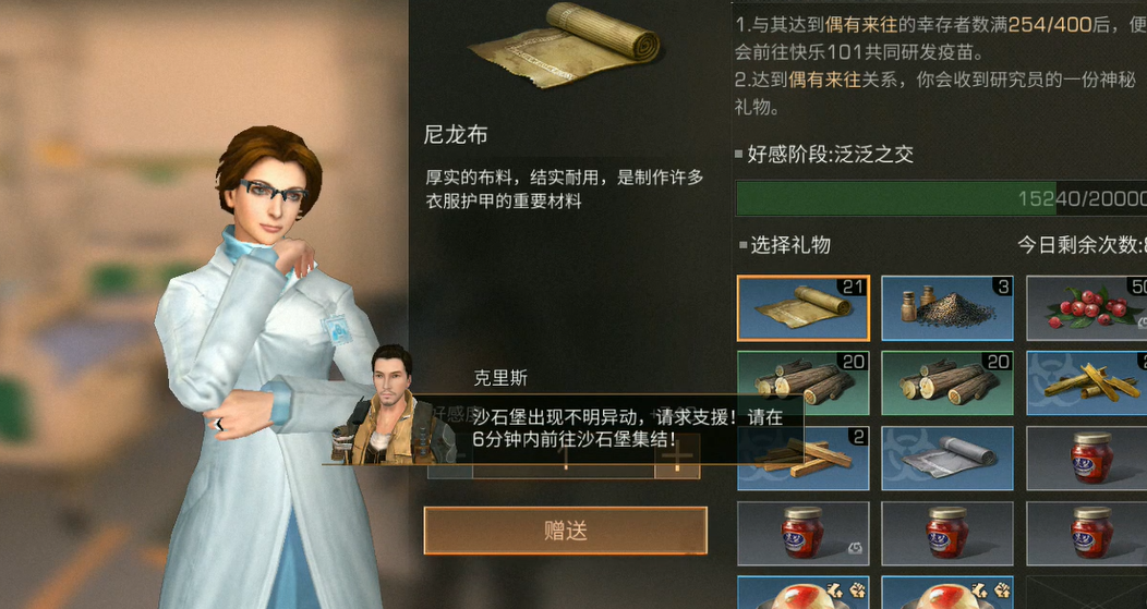 配方残页是抽取高级装备配方必不可少的资源,尤其对于零氪玩家来说,掌握多种获取途径能显著提升游戏体验。通过向特定NPC赠送礼物来提升好感度是一种稳定可靠的方法,例如向快乐101营地的瑞秋赠送奶糖或蛋糕,向长发赠送肉酱意大利面,或向海德尔提供蓝色材料和奶糖等物品,当好感度达到泛泛之交阶段即可获得10个配方残页,好感度进一步提升至20000或100000,还能分别获取20个或40个残页,每天可以赠送十次礼物,优先选择他们偏好的物品能更快积累奖励。